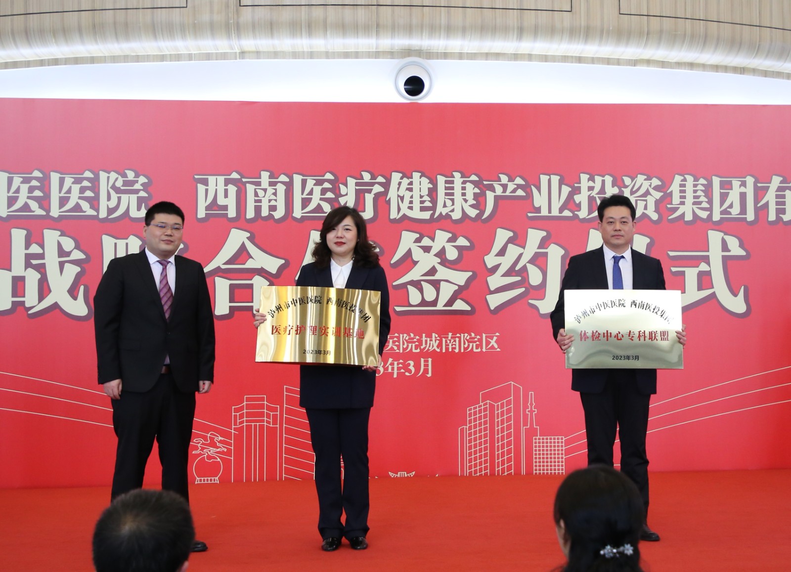 儀式上,雙方簽訂了戰(zhàn)略合作協(xié)議,對合作的瀘州市中醫(yī)醫(yī)院·西南醫(yī)投集團(tuán)醫(yī)療護(hù)理實訓(xùn)基地、體檢中心專科聯(lián)盟,瀘州市中醫(yī)醫(yī)院·瀘州醫(yī)療器械職業(yè)學(xué)院臨床技能中心進(jìn)行了授牌。
