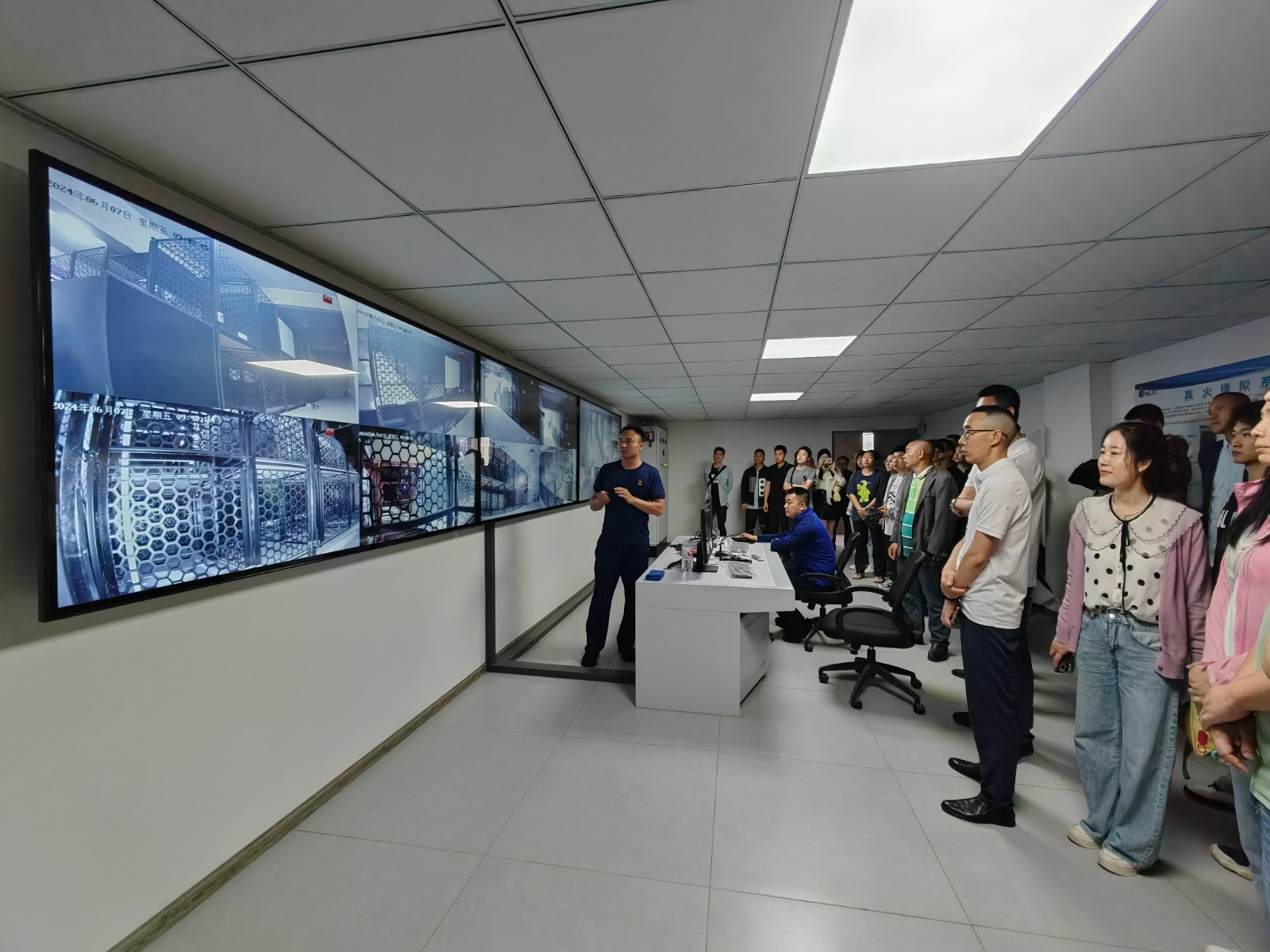大家參觀了基地的遠程供水車、登高車與泡沫滅火車等大型救援和后勤保障裝備,隨后來到煙熱實戰(zhàn)訓練控制室,學習了建筑火災(zāi)高溫煙氣燃燒風險的辨識與預(yù)判以及如何在煙火環(huán)境下進行自救、互救。最后在煙熱模擬訓練室進行了一場濃煙和高熱環(huán)境下的逃生訓練。