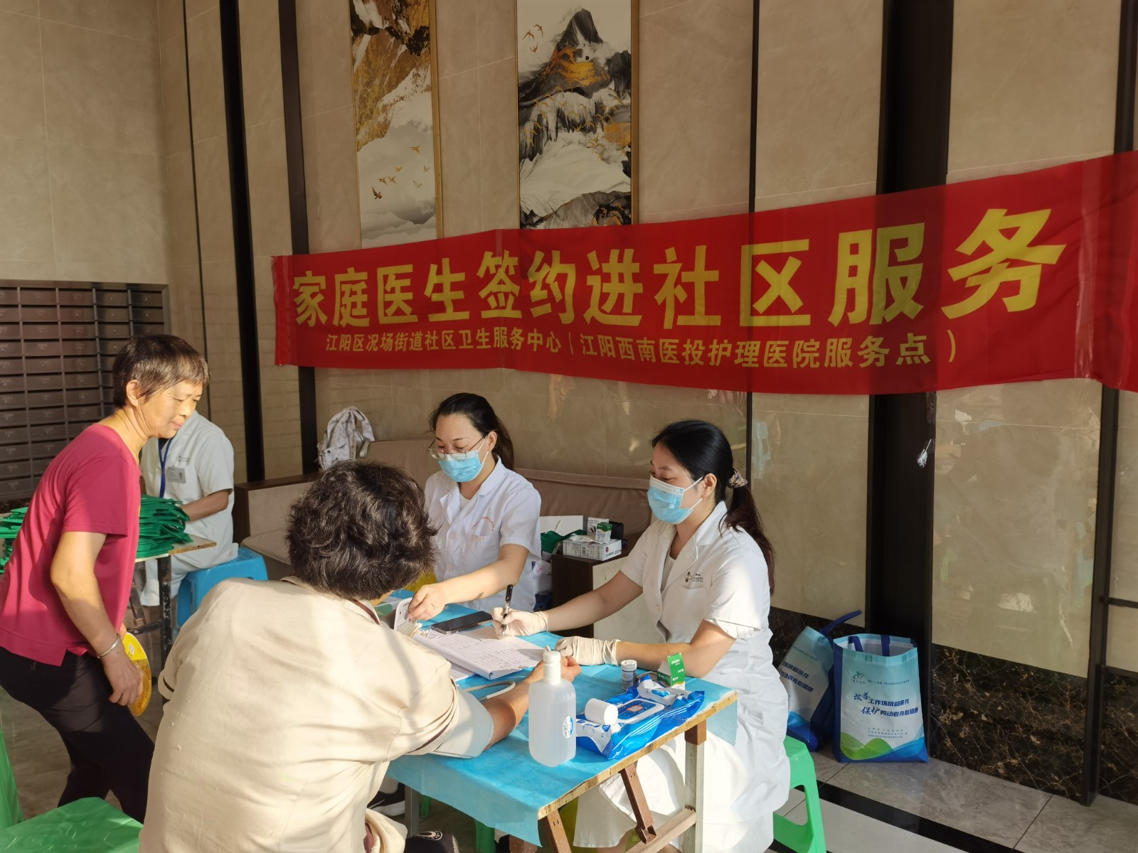 為進(jìn)一步落實(shí)《“健康中國2030”規(guī)劃綱要》,提升社區(qū)居民的健康水平和生活質(zhì)量,8月5日—9日,西南醫(yī)投集團(tuán)旗下江陽西南醫(yī)投護(hù)理醫(yī)院組織專業(yè)家庭醫(yī)生團(tuán)隊(duì)走進(jìn)江陽區(qū)翡翠濱江、陽光國際城、天譽(yù)譽(yù)府、金科博翠灣等多個(gè)小區(qū)開展“家庭醫(yī)生團(tuán)隊(duì)進(jìn)社區(qū)”服務(wù)活動,為況場街道轄區(qū)300余名居民提供健康管理服務(wù)。