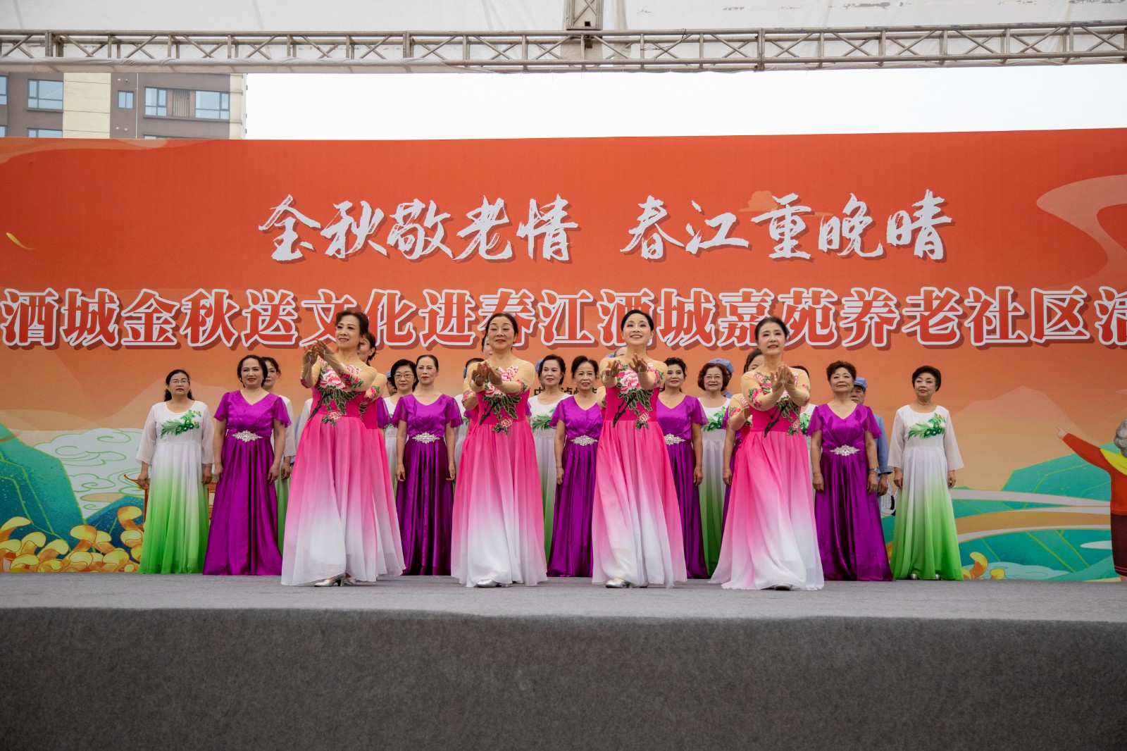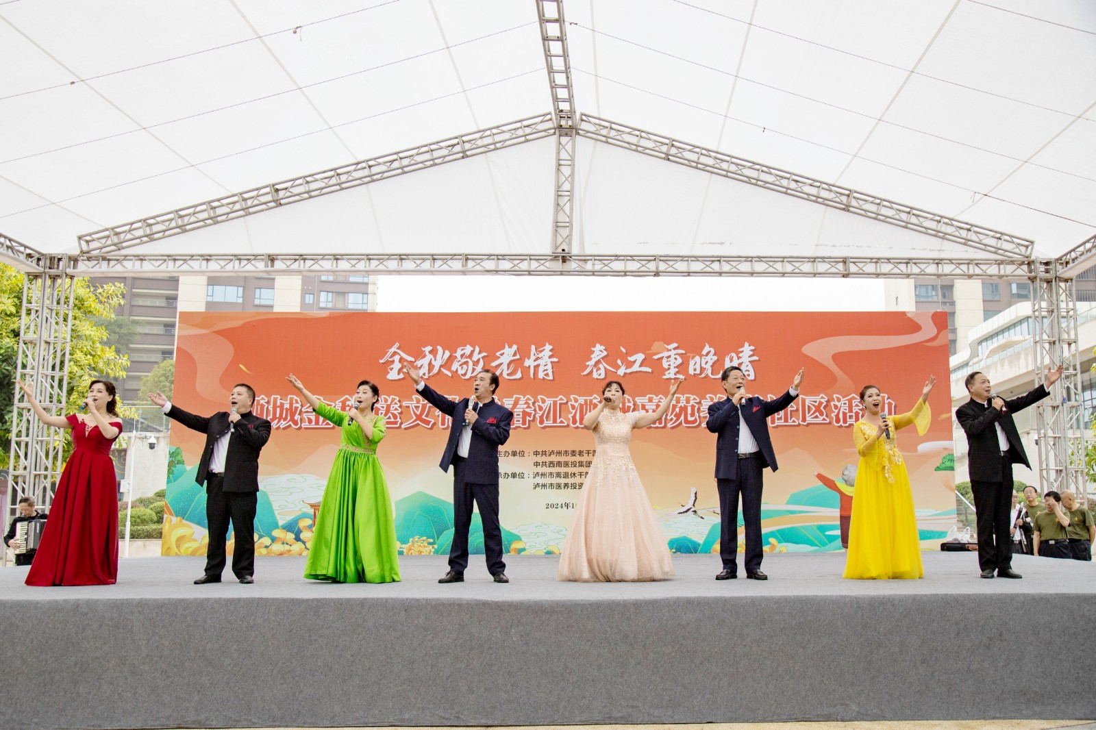 金秋送爽,丹桂飄香。為弘揚(yáng)中華民族尊老愛老的傳統(tǒng)美德,豐富老年朋友的文化生活,增強(qiáng)老同志的獲得感和幸福感,10月10日,由瀘州市委老干部局與西南醫(yī)投集團(tuán)聯(lián)合舉辦的“金秋敬老情·春江重晚晴”酒城金秋送文化活動在春江酒城嘉苑養(yǎng)老社區(qū)舉行,為社區(qū)老年朋友獻(xiàn)上了一場文化盛宴。市委組織部副部長、老干部局局長唐雯,瀘州發(fā)展控股集團(tuán)副總經(jīng)理、西南醫(yī)投集團(tuán)黨委書記、董事長林健出席活動。