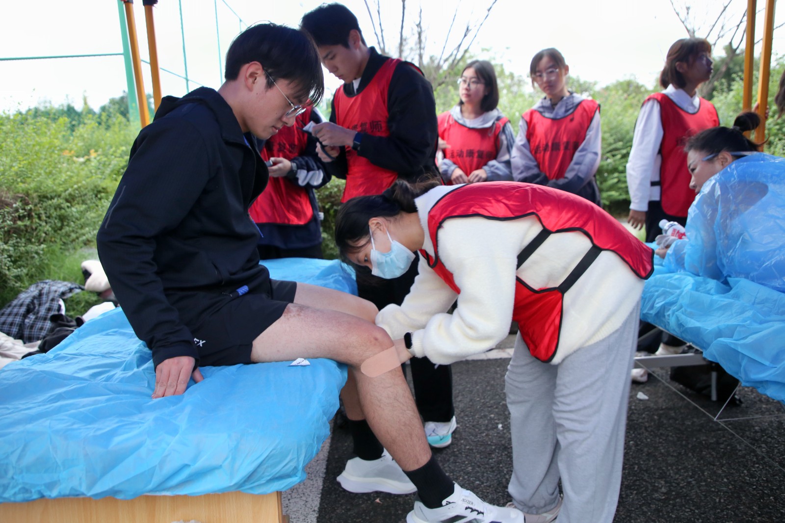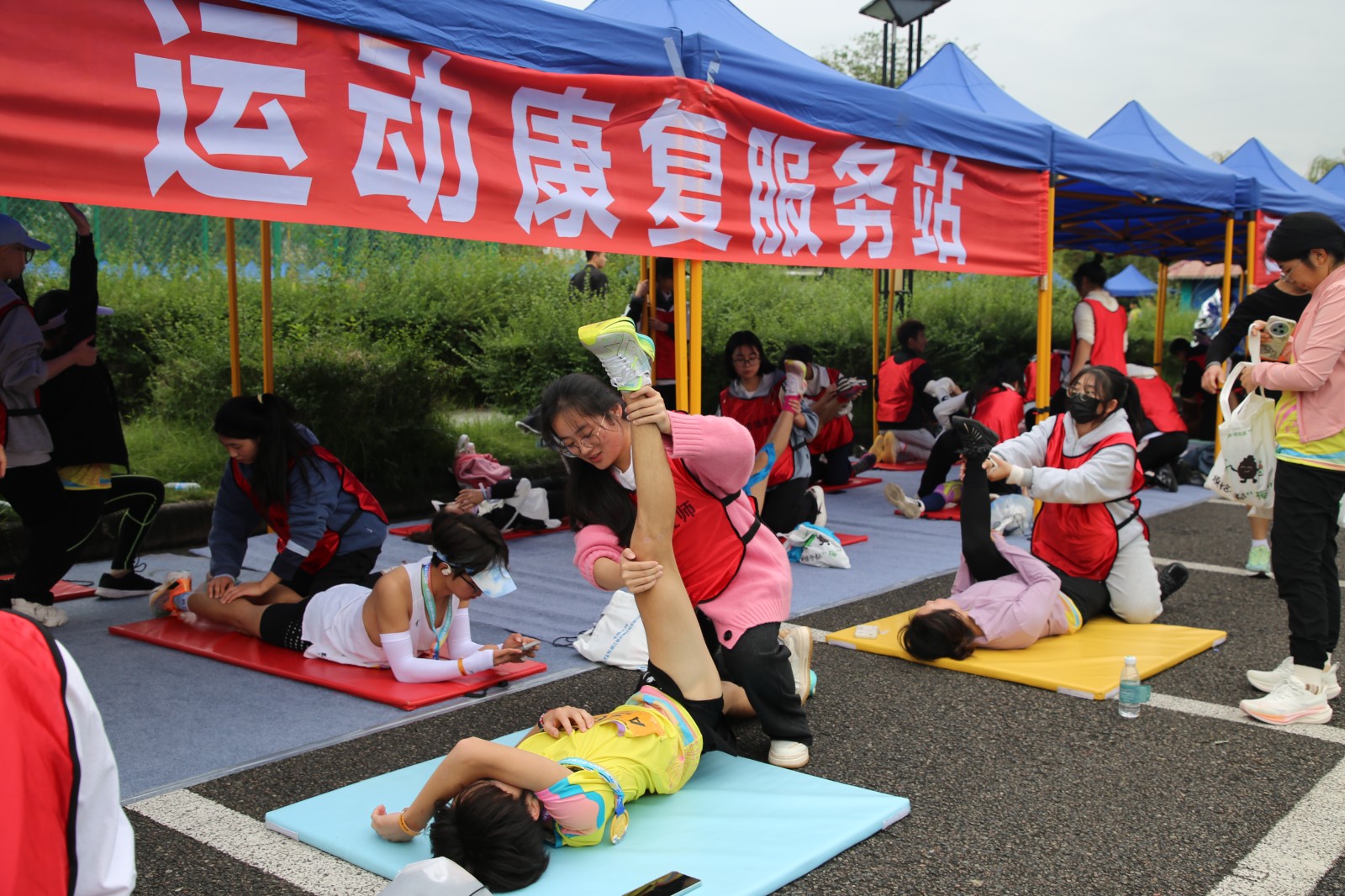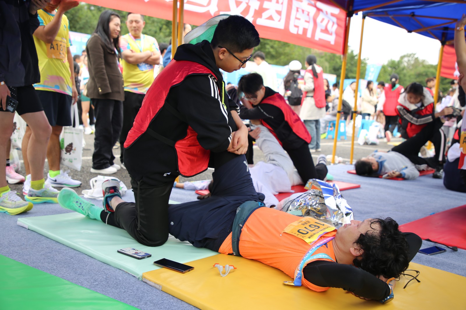 比賽前夕,運(yùn)動(dòng)健康中心提前布置現(xiàn)場(chǎng),科學(xué)設(shè)置肌貼區(qū)、自由拉伸區(qū)、運(yùn)動(dòng)損傷康復(fù)區(qū)三個(gè)區(qū)域,時(shí)刻準(zhǔn)備為參賽選手提供貼心服務(wù)。比賽階段,運(yùn)動(dòng)健康中心全程關(guān)注賽場(chǎng)狀況,第一時(shí)間為有需要的選手提供即時(shí)幫助與服務(wù)。其專業(yè)的指導(dǎo)與賽場(chǎng)服務(wù)得到了參賽選手的一致好評(píng)。此次馬拉松賽運(yùn)動(dòng)健康中心派出專業(yè)運(yùn)動(dòng)康復(fù)師6名,專業(yè)教練5名,志愿者30余名,提供賽前肌貼、賽后拉伸、疼痛評(píng)估及康復(fù)服務(wù)等服務(wù)共計(jì)1500余人次。